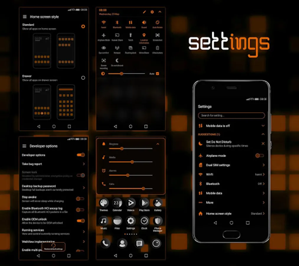 This theme is designed for Huawei / Honor devices running EMUI 5/8 / 9.0. Please check your EMUI version before installing it in your device. Compatibility with different version of EMUI is not guaranteed!