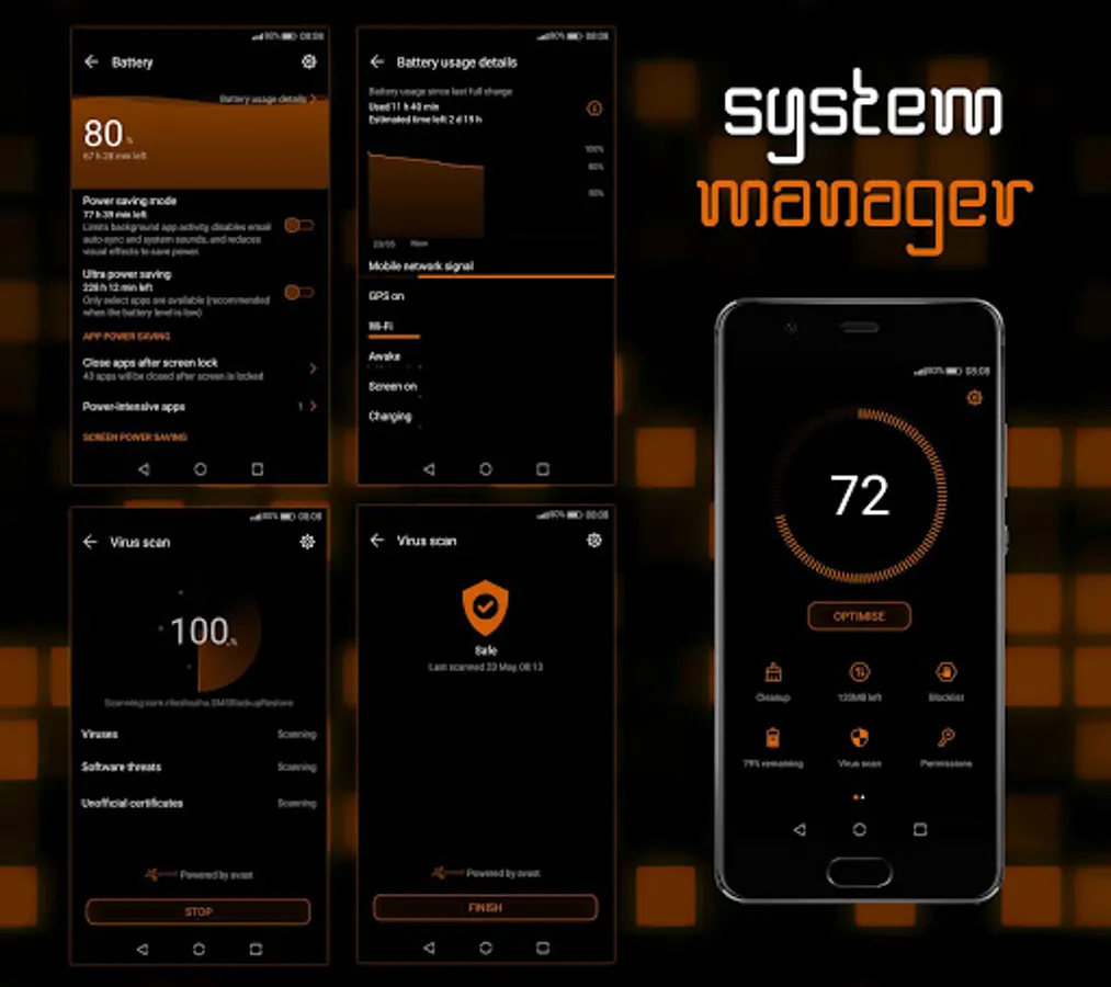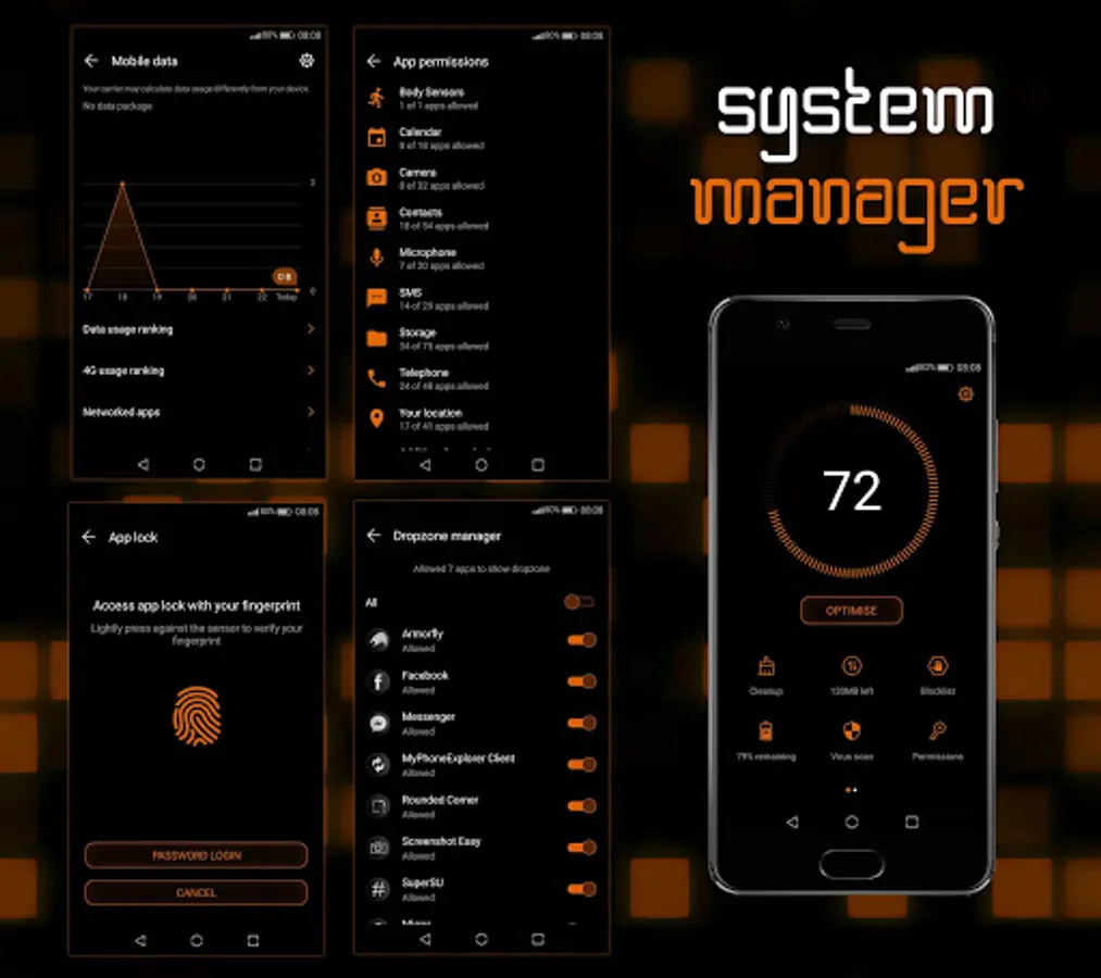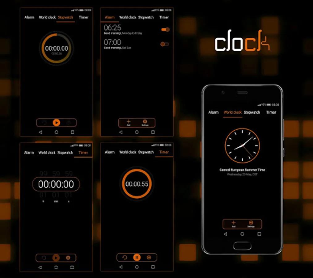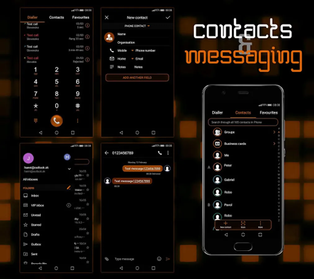 Unique and exclusive dark theme. Pure and elegant design, completely black with contrasting orange.