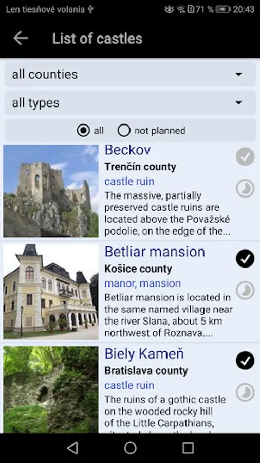 In this premium version you will find the news section, a list of castles in Slovakia filterable by categories and counties.