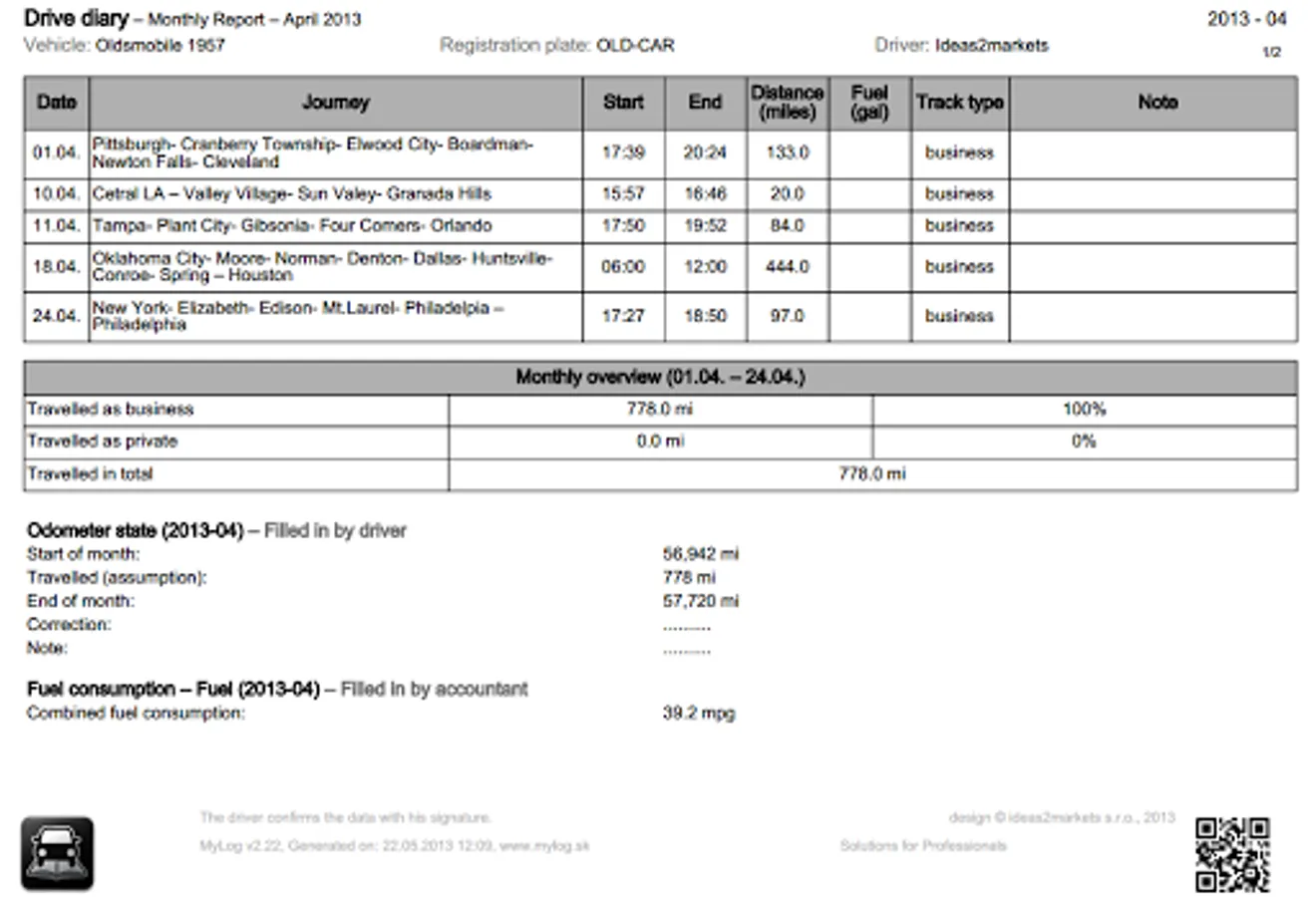 At the end of the month: correct the mileage with odometer and send your report to the accountant.