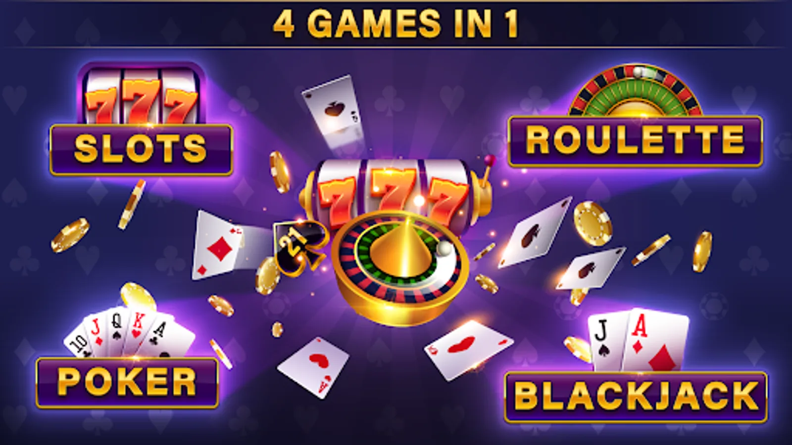 ★ 4 games in 1 - SLOTS, POKER, BLACKJACK, and ROULETTE