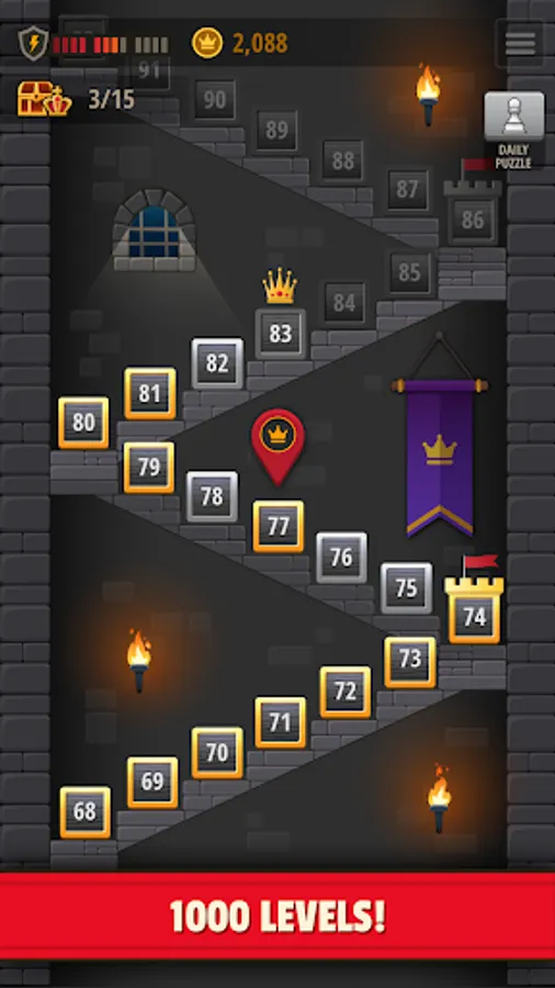 Chess Puzzles - Grandmaster Tactics: Quest loot is a fresh new game for all true strategy board games enthusiasts wishing to polish their tactics and to test their skills, or for newcomes wanting to simply learn chess free in quest based magic chess puzzles from scratch! Can you win each scenario in one or two moves and prove you are a true chess king? If you can manage all the chess puzzles in time, you get even better rewards!