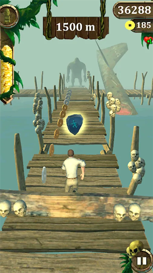 Jungle run is full of opportunities for how you can enjoy every temple game. You can collect powerful boosts, unlock special outfits and explore beautiful environment. You must be brave if you want to escape because gorilla is so close. In this temple, you will experience a lot of surprises and a real tomb raider must defeat them.