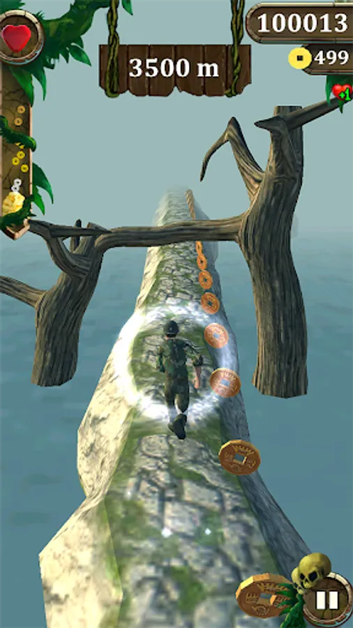 Collect unlockable treasures - this jungle run is full of them. Collect and open them to receive 2 in-game currencies: gems and coins.