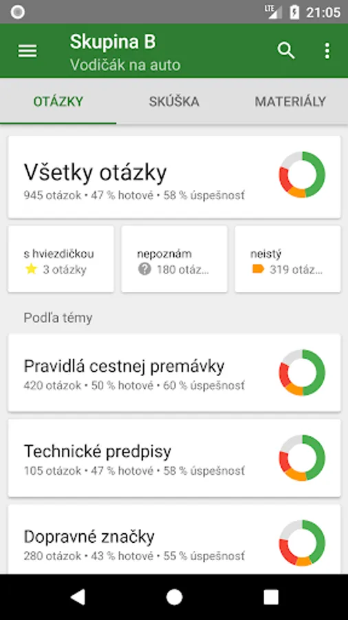 The application also contains an older set of questions according to the Ministry of Transport and Construction (jiscd.sk).