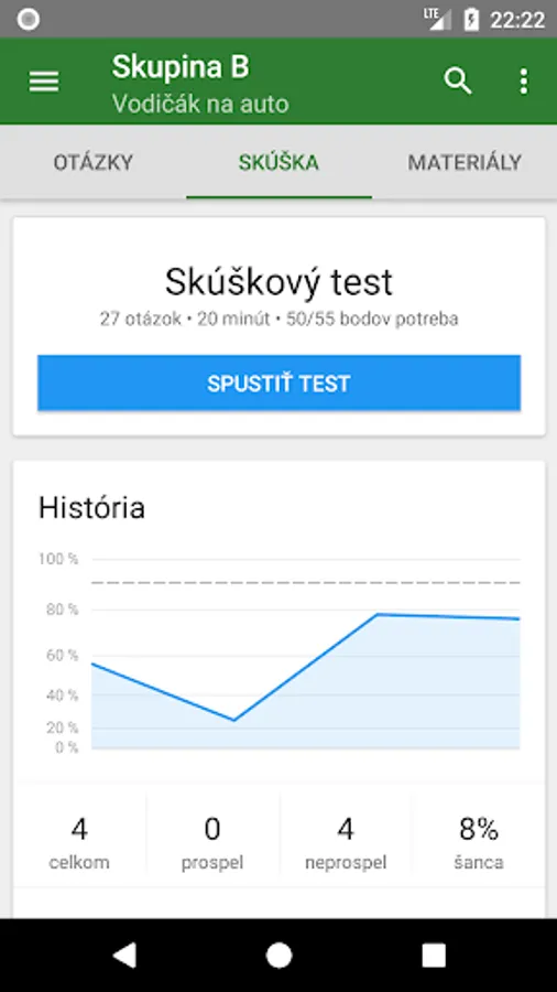 The application remembers how you answer individual questions. Based on this, he can recommend which questions you should still practice. It can also estimate your probability of success in the exam!