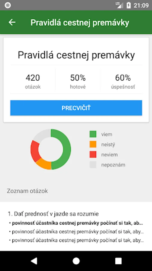 The application remembers how you answer individual questions. Based on this, he can recommend which questions you should still practice. It can also estimate your probability of success in the exam!
