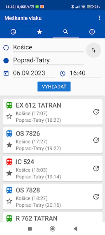 Trains are easy to find either on the train or numbers according to criteria - where, where, date and time. Found trains can be added to "My train" and thus speed up repetitive results.