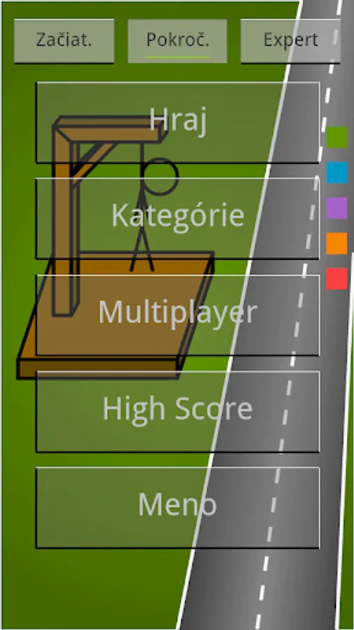 Pre zobrazenie kategórie, do ktorej hádané slovo patrí, je potrebné kliknúť na tlačítko s otáznikom.
