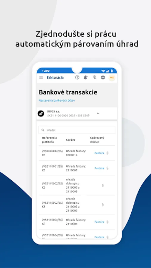 Invoice with the tuned application KROS Invoicing without errors, simply and with a few clicks. On computer, tablet and mobile. Issue invoices, credit notes or reminders in a foreign language. Enjoy automatic payment matching and online payments.