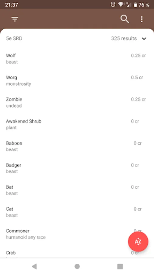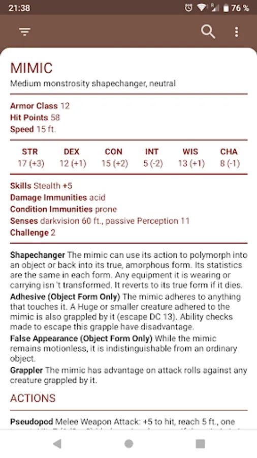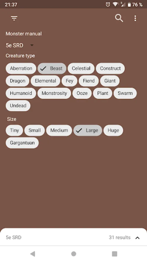 DnD monster manual for 5e. SRD is included. Option to import your own xml files.