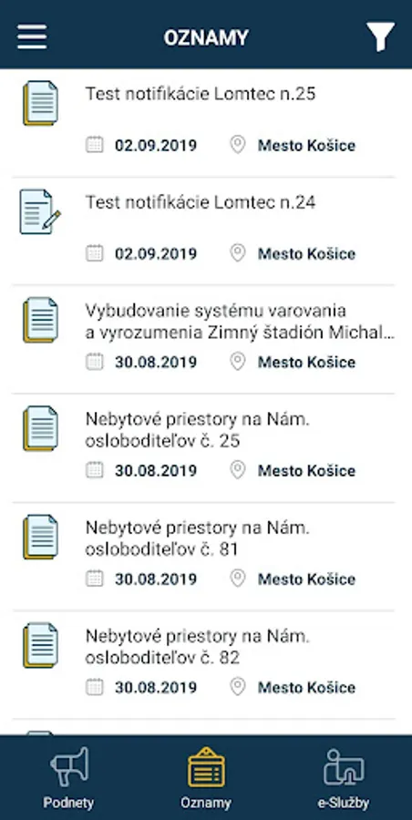 The Košice mobile application provides a clear and fast access to display selected electronic services within the Košice Electronization Service.