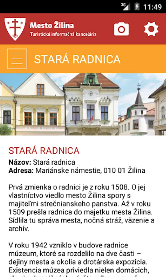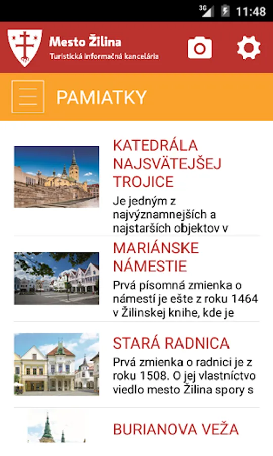 The application includes a database of town attractions, gastronomic and accommodation facilities, cultural events, monuments and places, where you can relax or enjoy sport in the Žilina region. A list of all the current events, such as programmes of cinemas, festivals, theatres, sport events and many others are listed under the heading: “WHERE TO GO IN ŽILINA”.