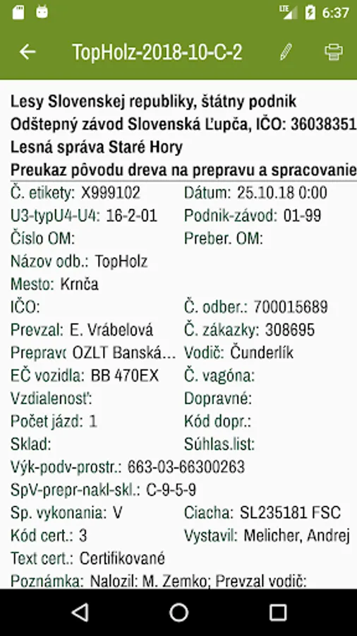 The application is used for the calculation of timber volume measured in the cortex and generate documents for timber transport.