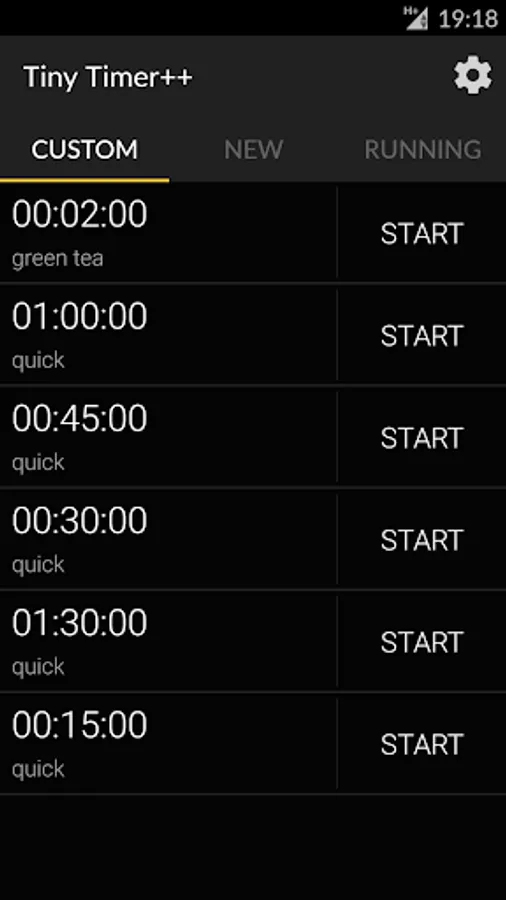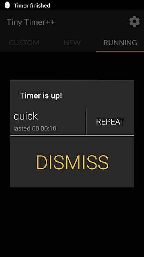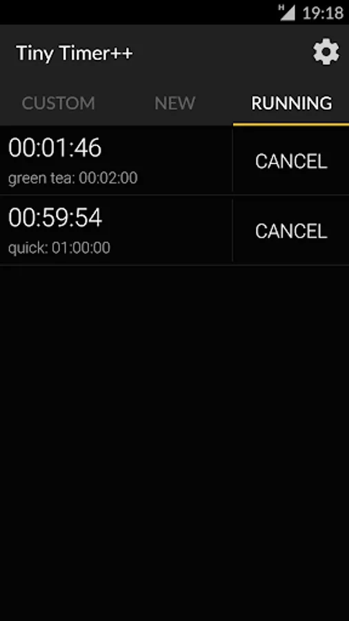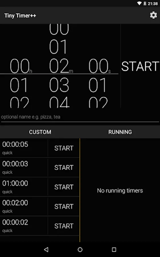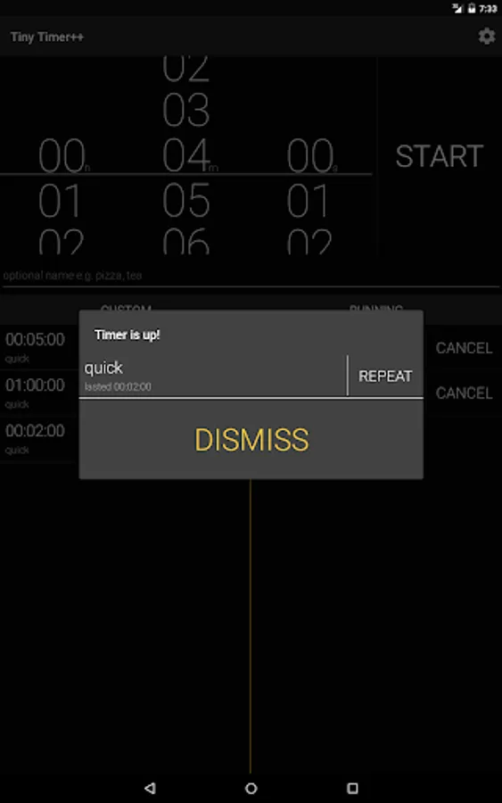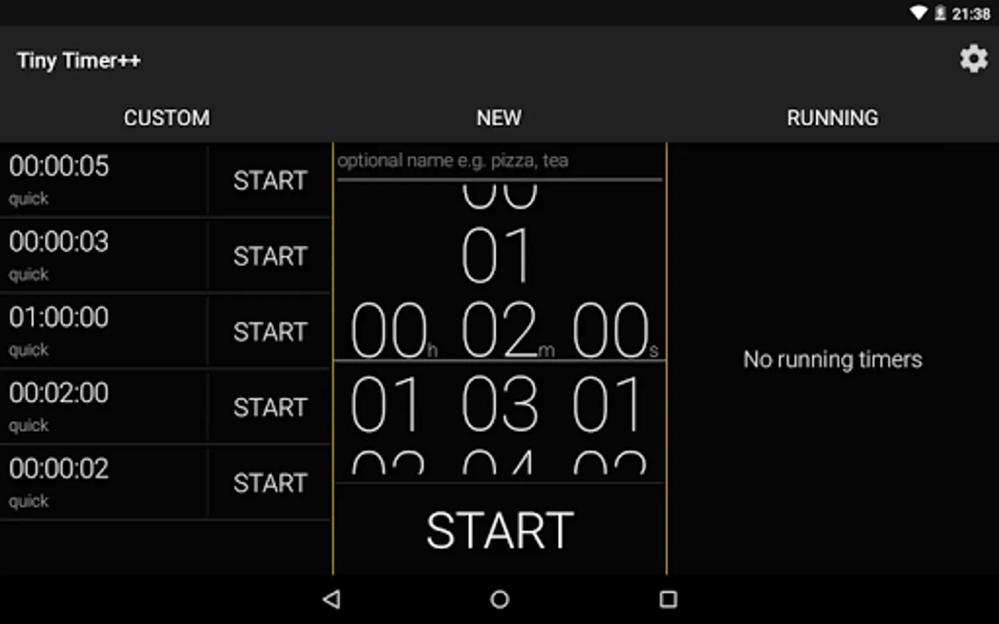 Phone UI: Swipe left or right to access the running timers (where you can cancel them) or a list of used timers (where you can start and delete them).