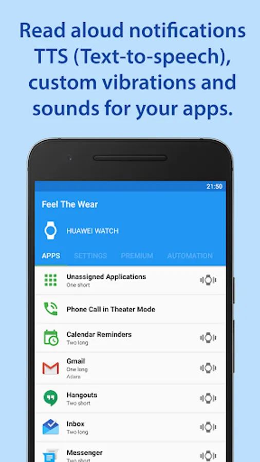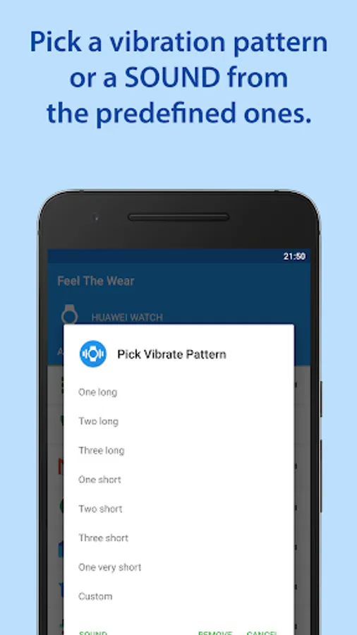 Weak vibrations on your Wear watch? Do you miss notifications? Feel The Wear allows you to set custom vibrations and sounds for your apps' notifications. Works also without a watch, let the phone have the custom vibrations! Phone only operation does not support sounds.