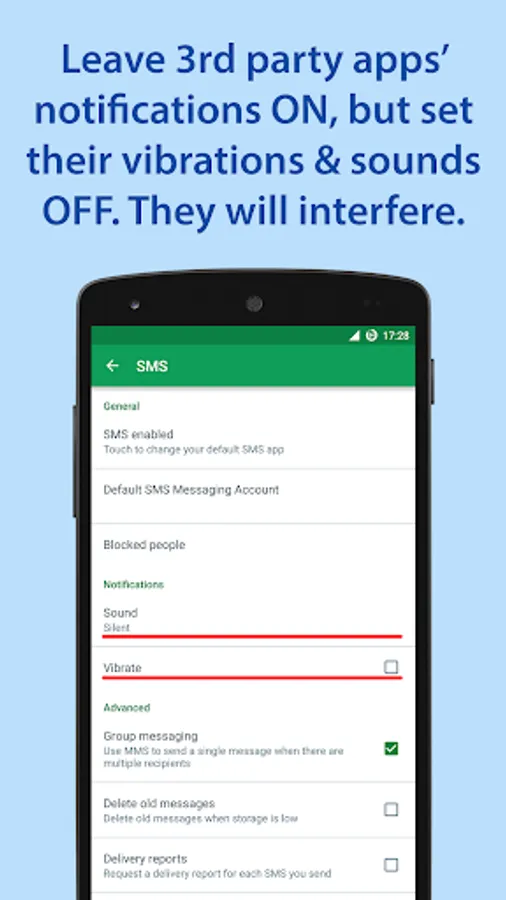 * set vibrations even for apps which have non-vibrating notifications only (e.g. Skype, Viber, WhatsApp, Snapchat, etc.)