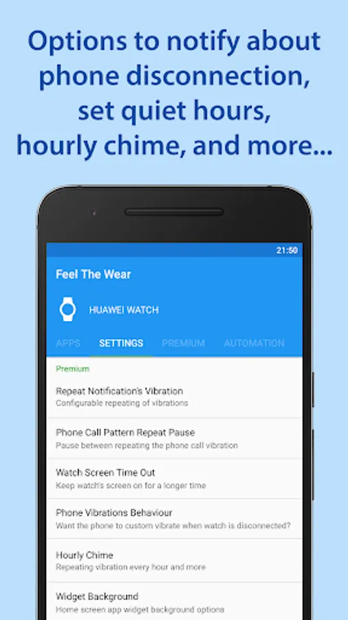 * optional long vibration pattern when phone disconnects from your watch (configurable in premium)
