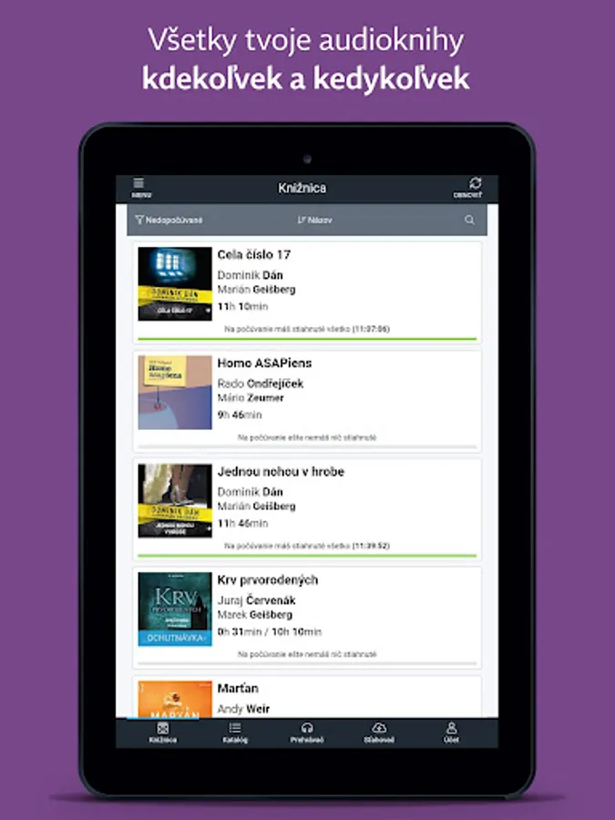 - Listen to your audiobooks wherever you are. Pick up where you last left off, pretáčajte ... simple, intuitive Enjoy.