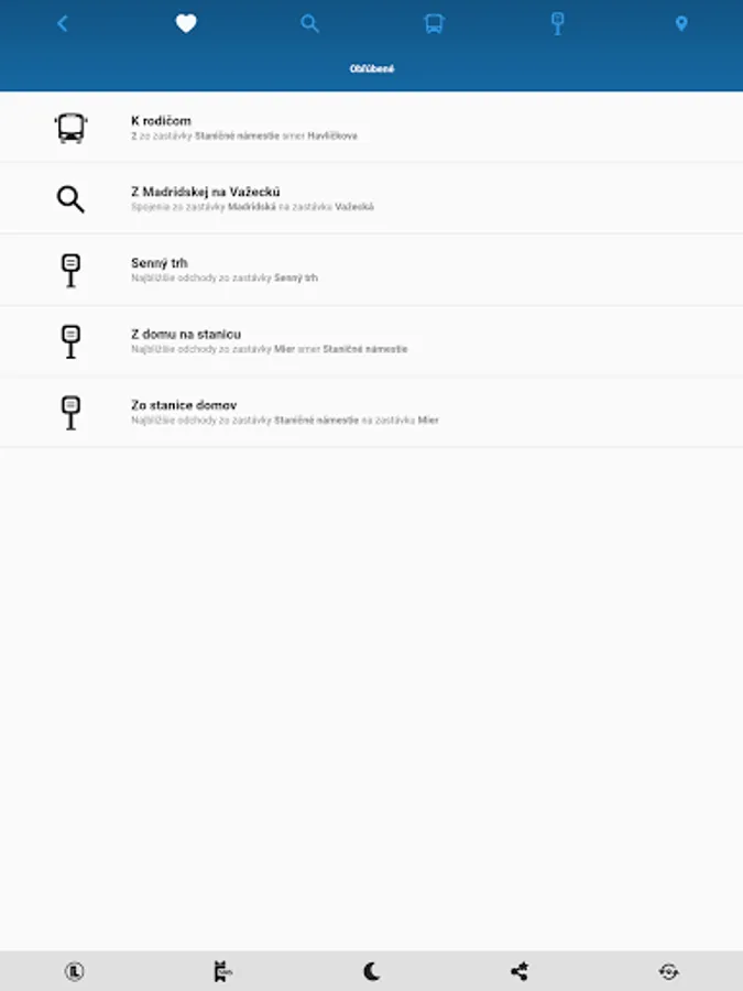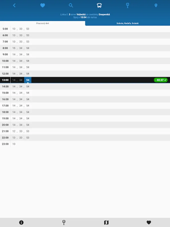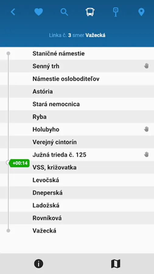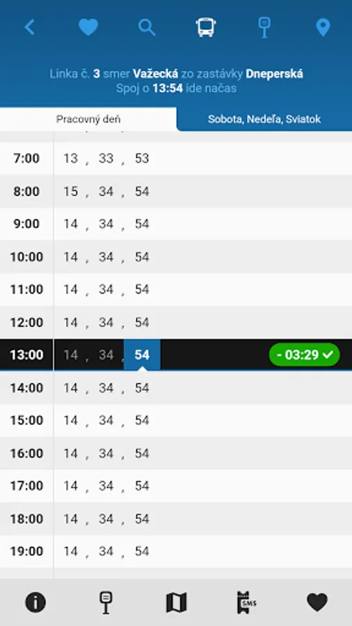 Save your favorite connection or a favorite stop that you travel often from. The deduction will show you how much you have left until the departures of your favorite connections. In addition, if you do not catch up, you can also buy an SMS ticket. The application will take care of the current timetables itself, so you will no longer be surprised by any stop with a pasted message;) There is also a display of the location of vehicles, stops and route lines on the map. The application also notifies of possible exclusions and notifications from the transport company.