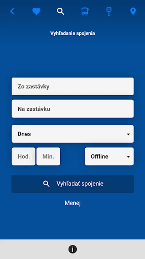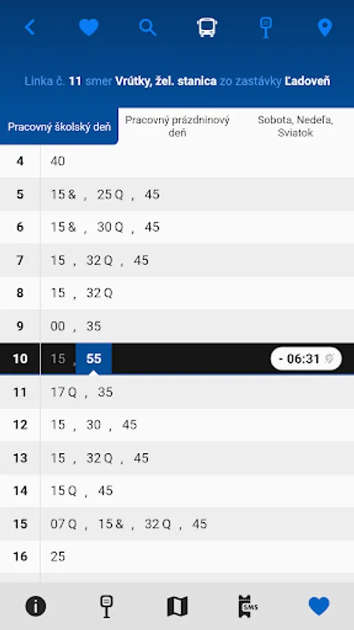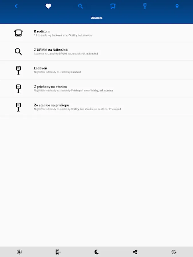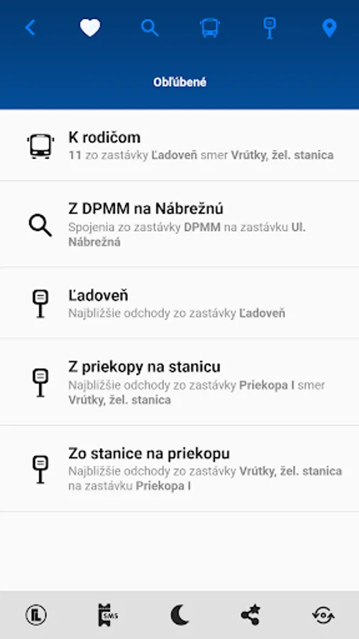 Save your favorite connection or a favorite stop that you travel often from. The deduction will show you how much you have left until the departures of your favorite connections. In addition, if you do not catch up, you can also buy an SMS ticket. The application will take care of the current timetables itself, so you will no longer be surprised by any stop with a pasted message;) There is also a display of the location of vehicles, stops and route lines on the map. The application also notifies of possible exclusions and notifications from the transport company.