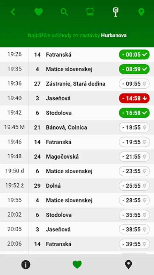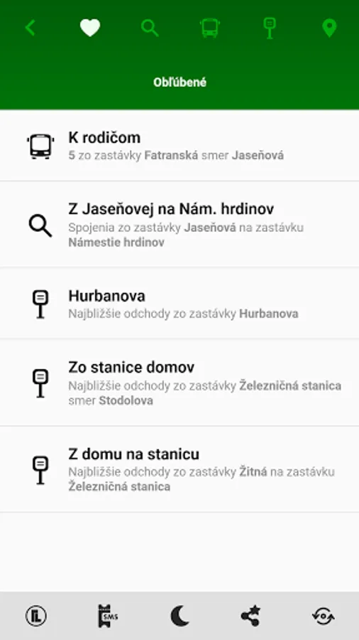 Save your favorite connection or a favorite stop that you travel often from. The deduction will show you how much you have left until the departures of your favorite connections. In addition, if you do not catch up, you can also buy an SMS ticket. The application will take care of the current timetables itself, so you will no longer be surprised by any stop with a pasted message;) There is also a display of the location of vehicles, stops and route lines on the map. The application also notifies of possible exclusions and notifications from the transport company.