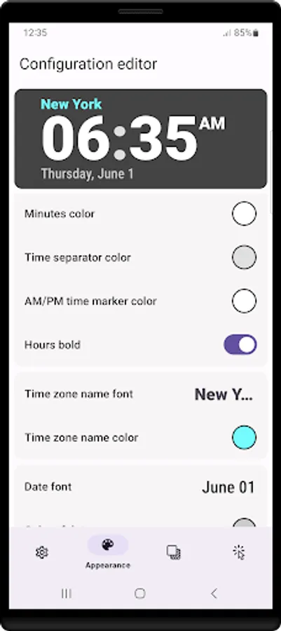 - Many colour, font and background options, all configurable with a convenient and user-friendly editor
