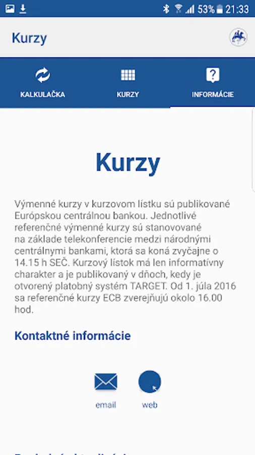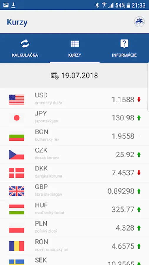 Exchange rates in the exchange list is published by the European Central Bank. Particular reference exchange rates are determined by teleconference between national central banks, which normally takes place at 14.15 CET. Exchange rate is for information only and is published in the days when it is open payment system TARGET. From 1 July 2016, the ECB reference rates published around 16.00.