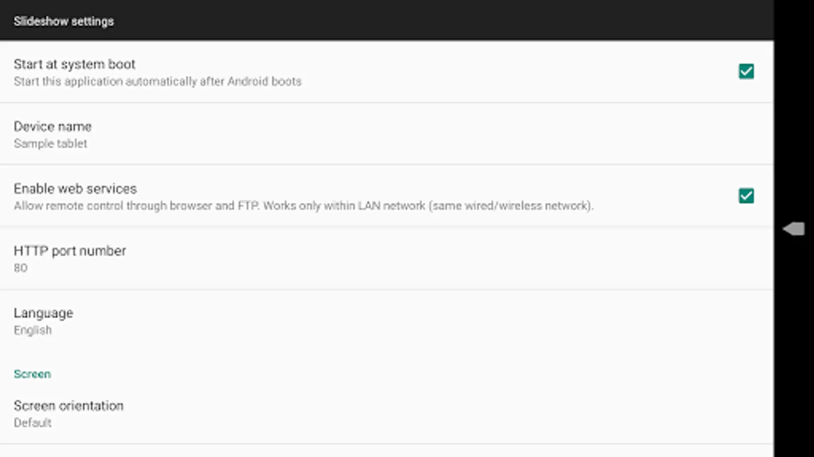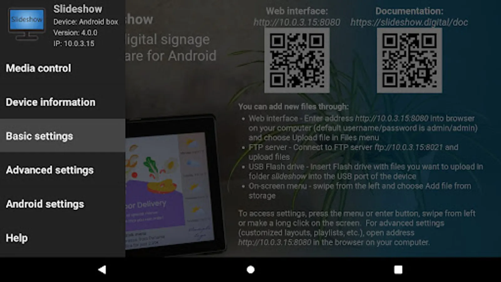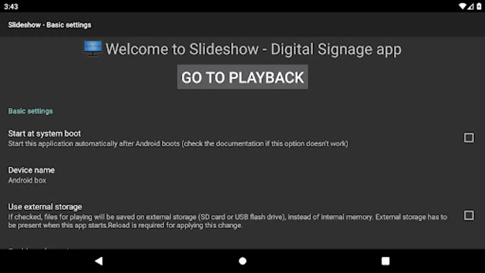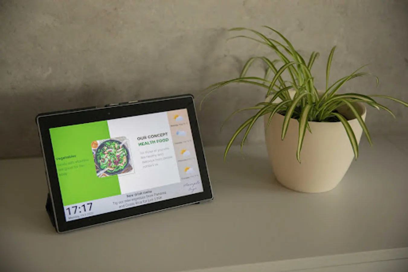 Turn your Android box, stick or TV into a Digital signage device and display sales material to your customers. Turn your Android tablet into a photo frame or small digital signboard.