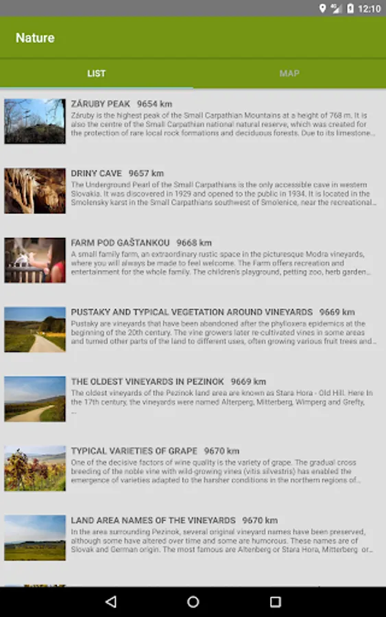 The app Malé Karpaty TRAVEL GUIDE is for everyone who wants to know unique values of the historical, cultural and natural heritage of the Smalll Carpathians region. You can easily find information about the most interesting cultural monuments, nature and viticulture along with the interpretation and navigation to the place.