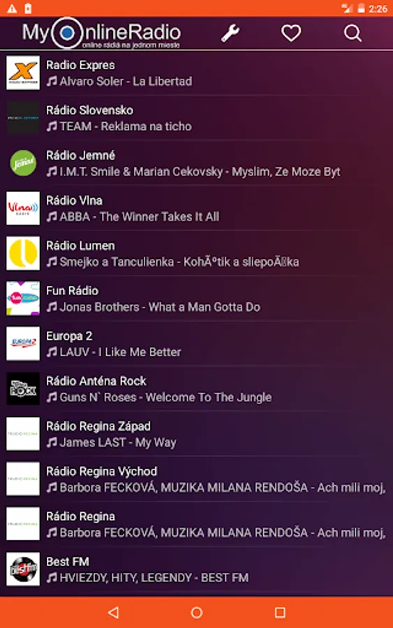 The Android application was created for the site myonlineradio.sk, which brings together Slovak online radio stations. Currently, the application has the same functions as the web interface. Currently, it allows you to listen to more than 100 Slovak internet online radio stations.