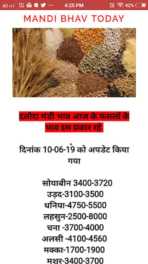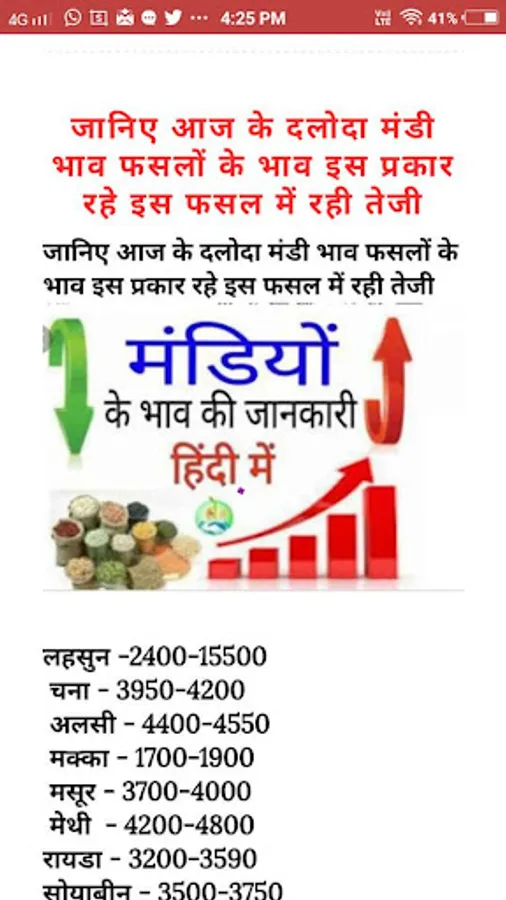pr bhi bhut kuch man dsaur ka phla digital news pletfrom hai 2018 me suru hua or aaj lgatar 3 year se aap ki seva me nom 1 bna hua kyuki ham news ke sath trust bhi dete hai farmar ke liye hmari team rojana mandi bhav ki seva deti taki farmar update rh ske isliye aap apne sabhi friends ko share kre taki vo bhi update rhe or hmari sarvice sab ko mill ske agr aap ke pas bhi koi news hai to aap hmari team ko 7999693933 pr sent kr skte aap ki news ko hmari team chek krke lgaegi