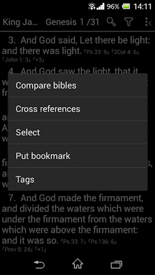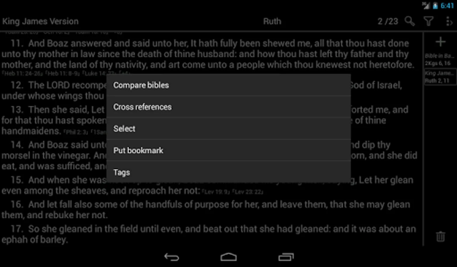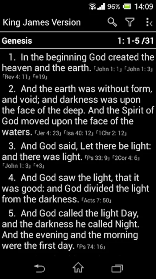 ✔ Experimental built-in cross reference sytem. If bible has standard book/chapter/verse structure like KJV (66 books) than system provides really relevant cross references.