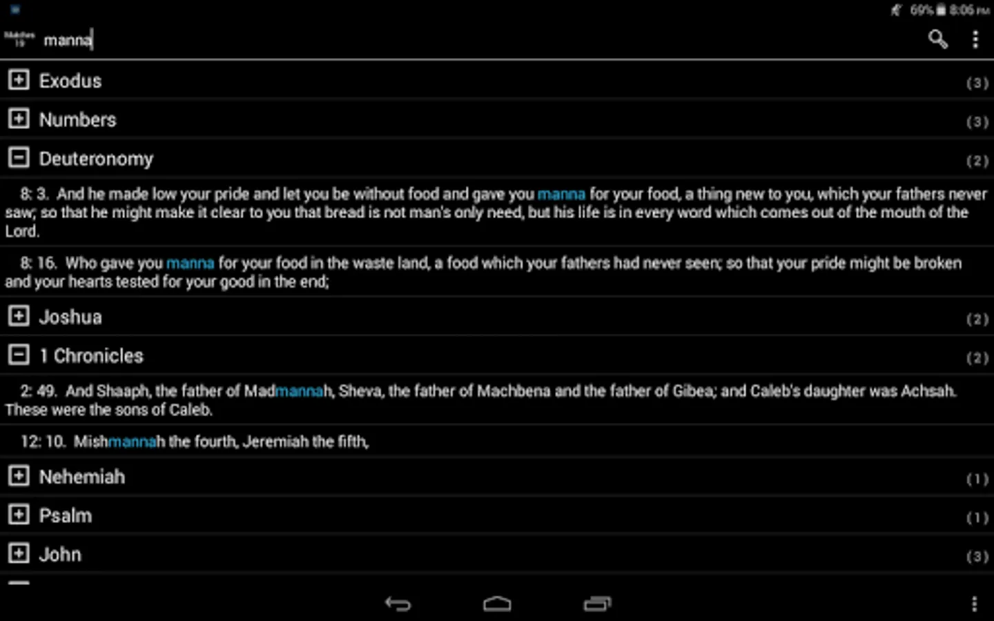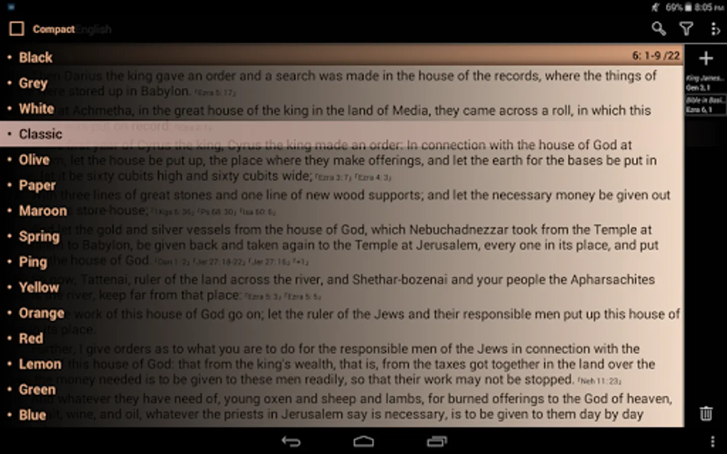 ✔ Navigation across a bible supported by bible navigator and gestures.