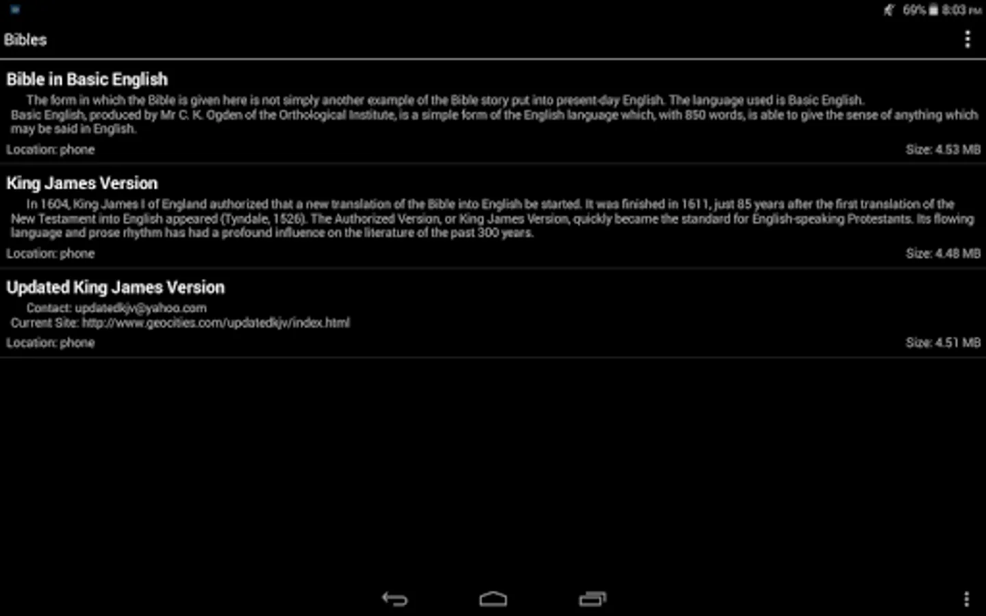 This application serves to reading bibles in different translations. Once you download or import bible and then you read bibles offline.