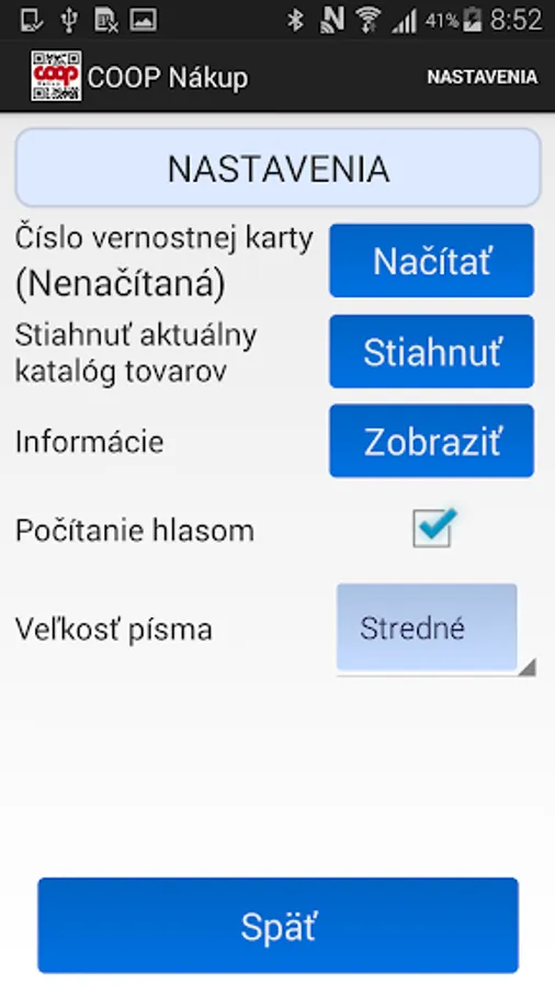 The application is not yet applicable in the exclusive stores sales network COOP Jednota New Castle.