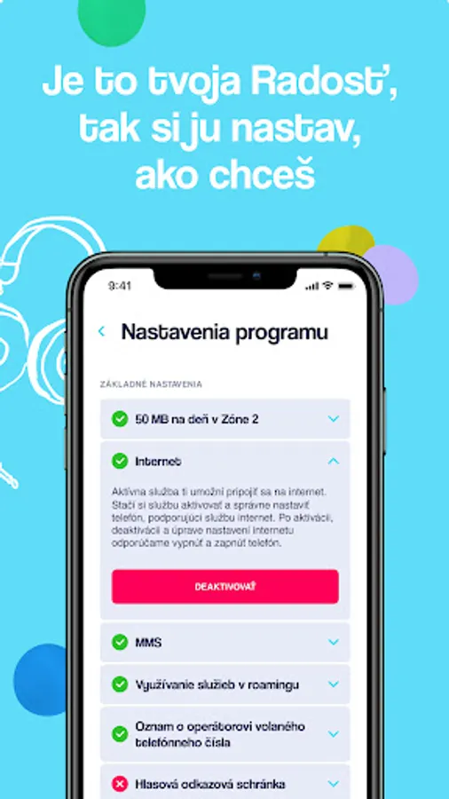 are you reading Excellent! 👏 And it's also great that with Radosťa, your digital operator in the app, you get the first 7 days of dating, texting and calling completely free. More precisely, you have your first Joy for the first week for free and without limits on the number of data, calls and messages.
