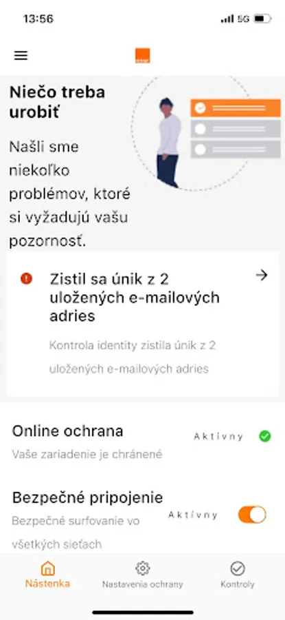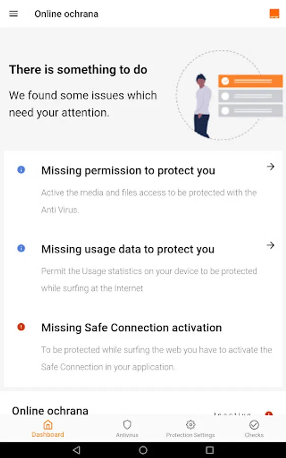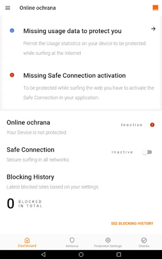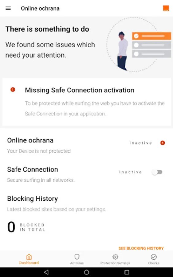 3. Step: To protect devices outside the Orange network, it is necessary to have the Smart device service activated for 2 euros per month. This advanced functionality can not only check your device with an antivirus scanner, but also create a secure VPN tunnel that connects you to the Orange network and maintains your level of protection even when you are connected to a public Wi-Fi network. You activate the service in the My Orange application or in the Customer Zone.