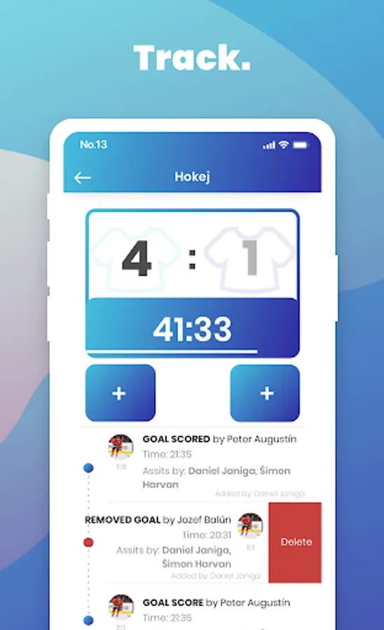2. Track scores real-time - bring one phone with you to the pitch and start the game as usual. With only one difference - when somebody scores, track it in the app. Just two clicks to assign the goal to the scoring player will eventually bring you rich stats afterwards. Totally worth it!