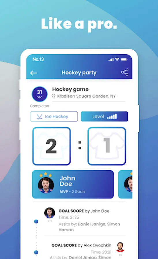 • Earn badges, win medals - on top of the “hard stats” like goals scored, time played or matches attended, there are great motivational badges you can earn with each game! These medals accumulate within your profile so your competitor knows who is he dealing with!
