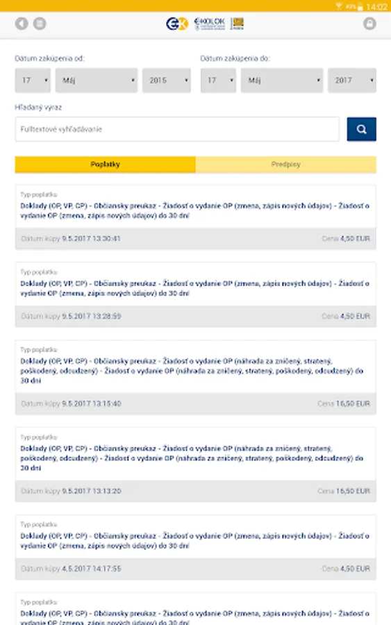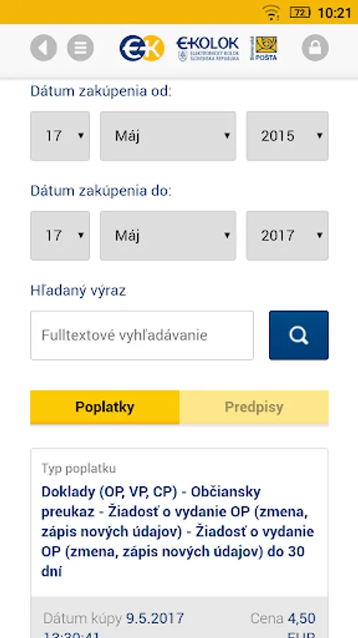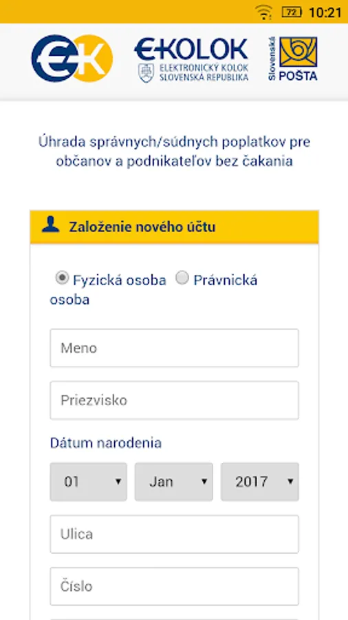Mobile application eKolok Slovak Post, Inc. It is used to cover administrative or court fees for citizens and businesses in Slovakia and completely without waiting.