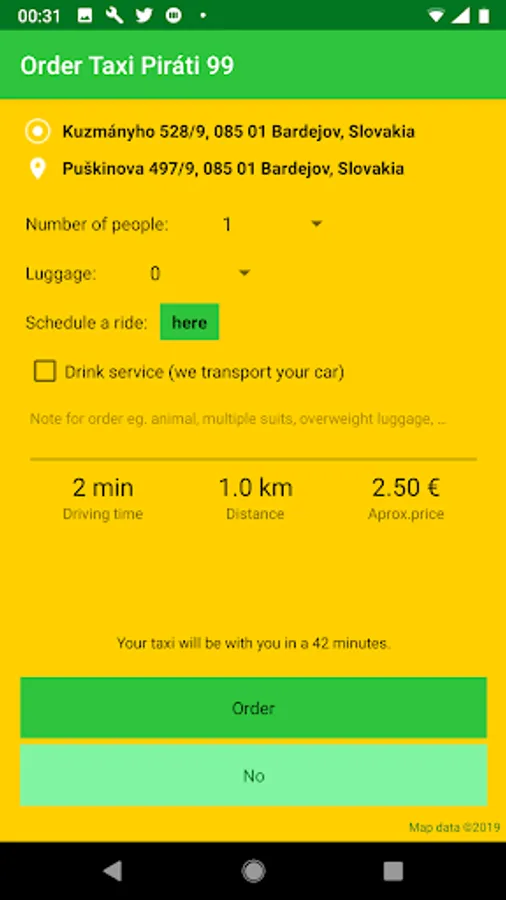 After many taxi drivers had made an agreement among themselves in 1999, a permission license for the biggest taxi service in Bardejov was accepted and got the official name "The Taxi Pirates". The main parking point was set right next to the "Republika hotel". The change of phone numbers from the casual one to shorten forms was made in 2001 and it has been in use till nowadays. But anyway, the greatest change came in 2005 when the company decided to sell the vehicles directly to its drivers. They started working on their own, found some more employees and have been developing their business. In 2013, the another step forward came for our company. We became the unity of concession owners. The amount of vehicles was increased and has been led in modernisation according to customers' requirements. Since 2014 we have been using GPS system controlling all our vehicles non stop for 24 hours a day.