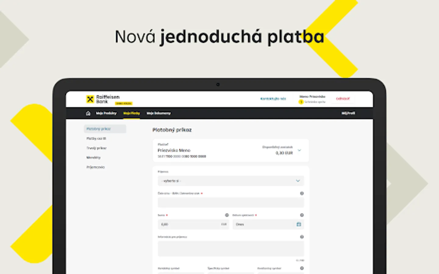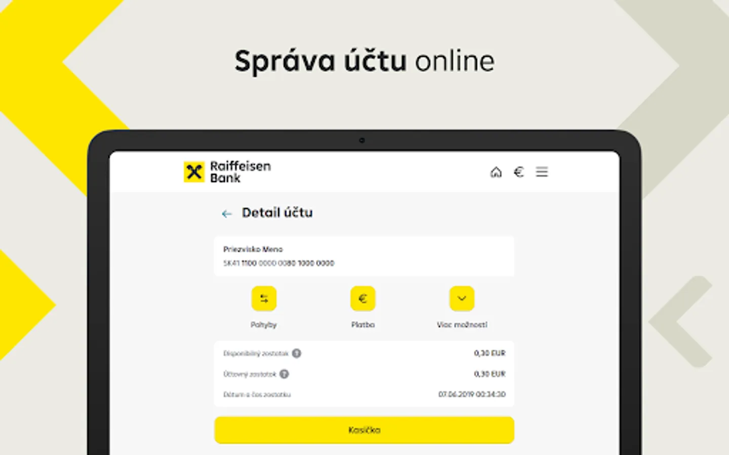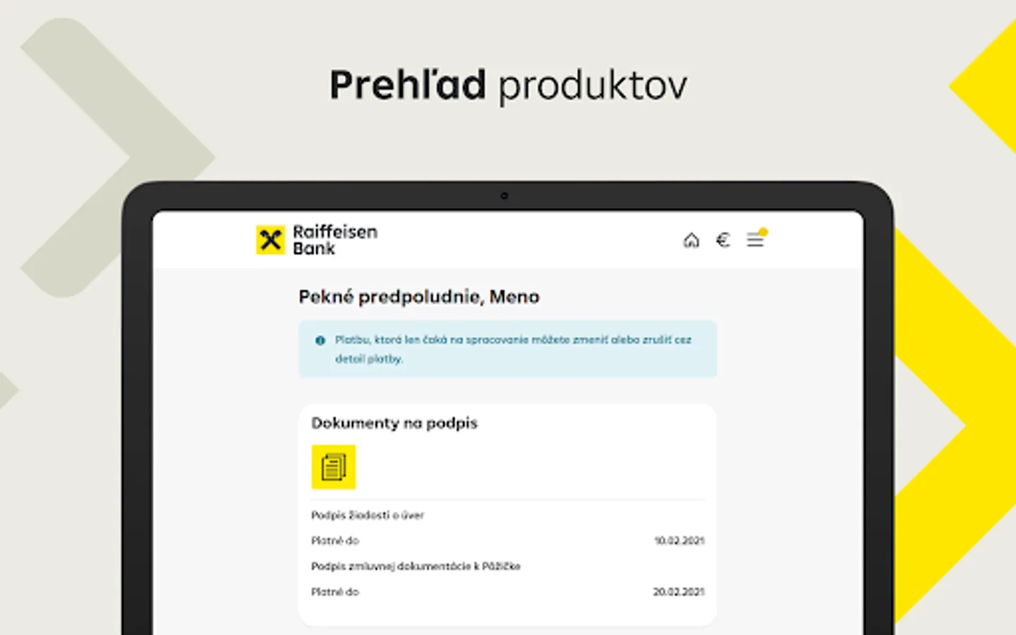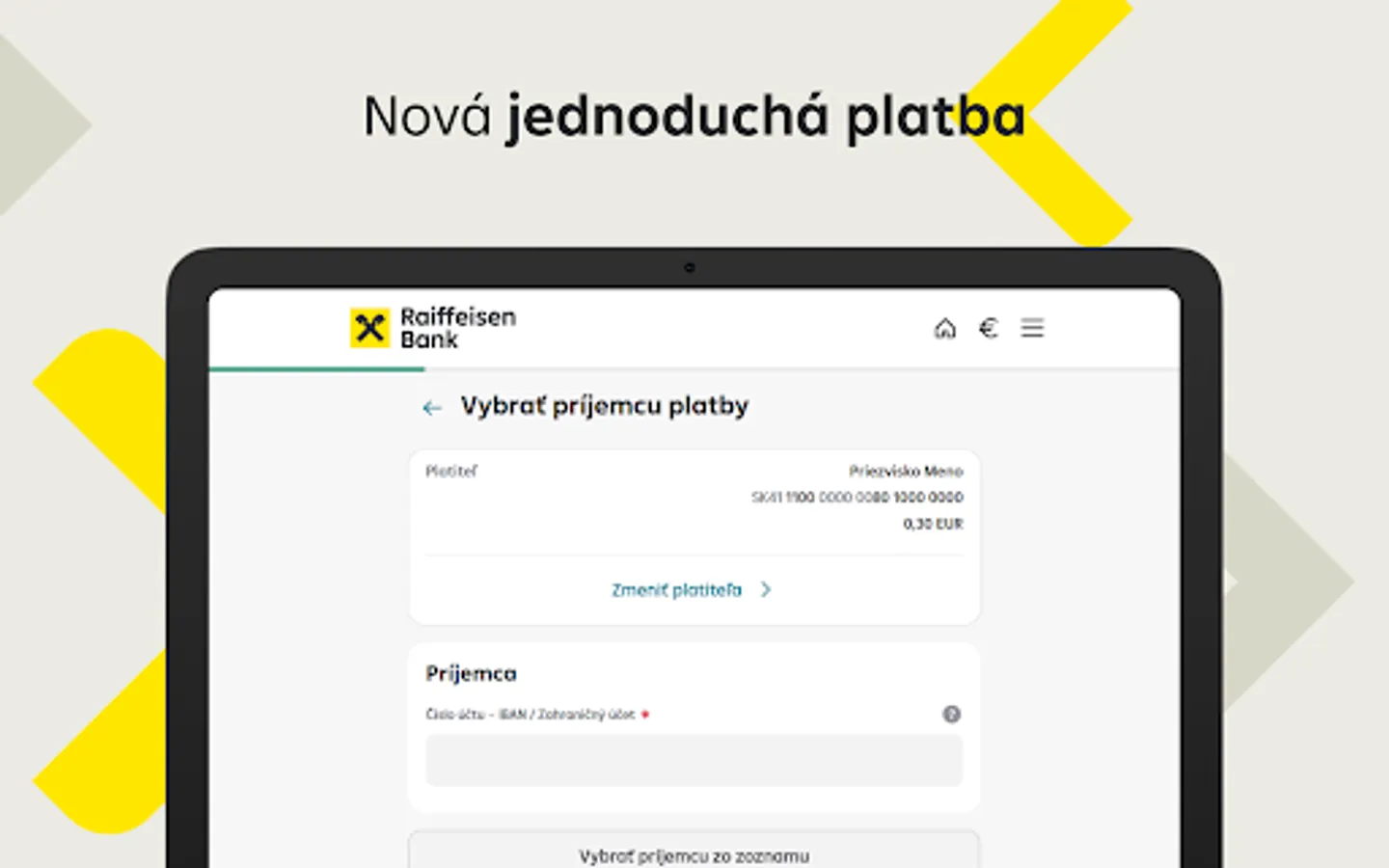 Terms of use for Internet Banking are given in Raiffeisen’s terms and conditions. Raiffeisen bank is Tatra banka, a.s., organizačná zložka podniku - Raiffeisen banka.