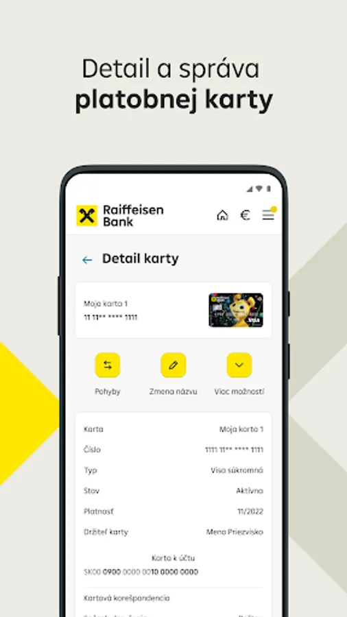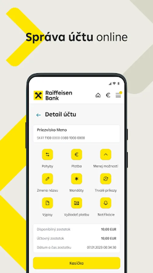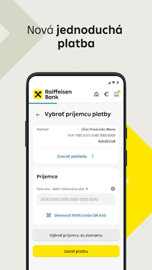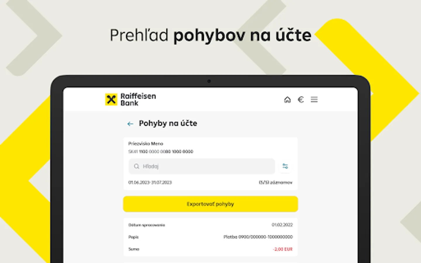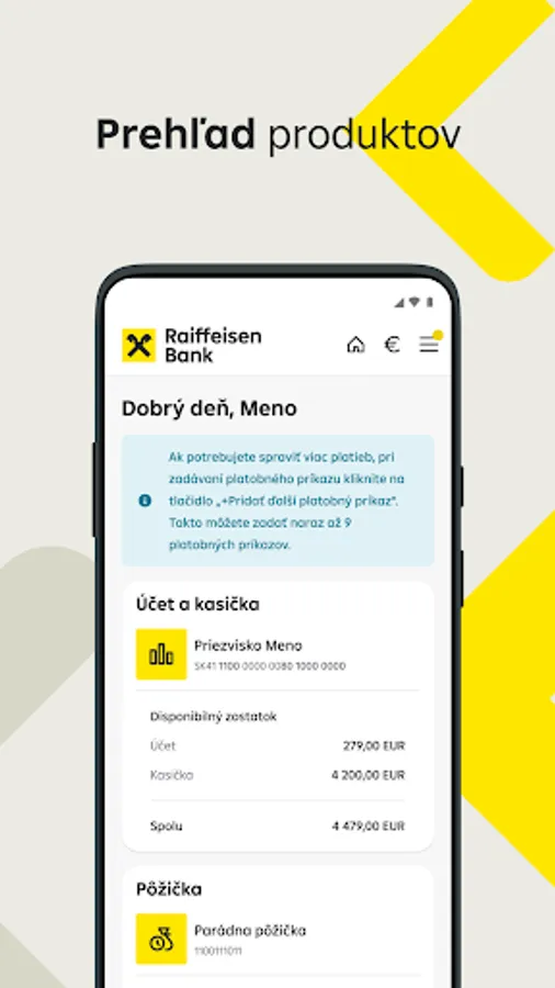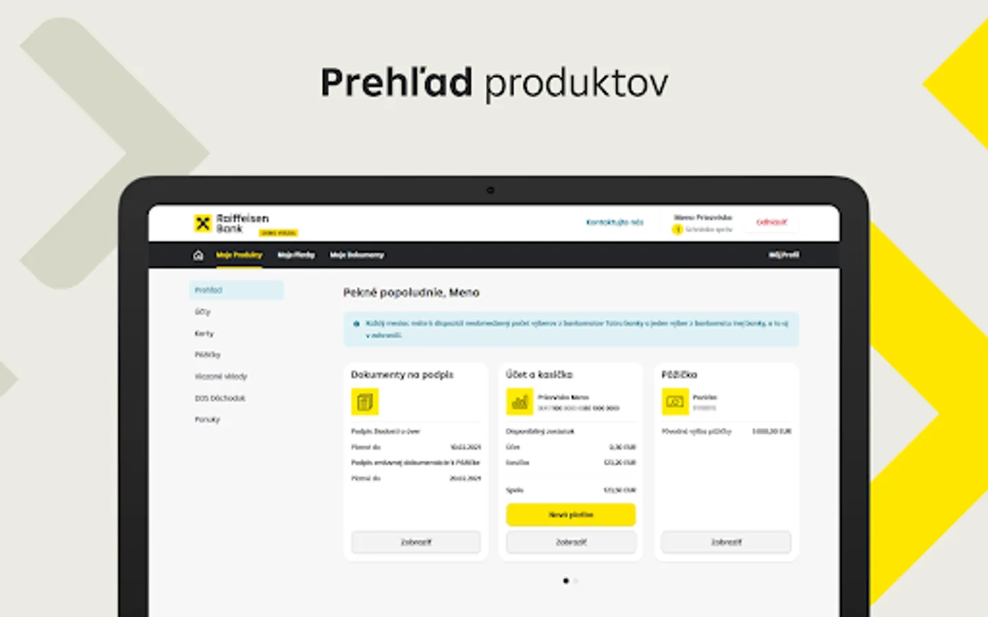 Terms of use for Internet Banking are given in Raiffeisen’s terms and conditions. Raiffeisen bank is Tatra banka, a.s., organizačná zložka podniku - Raiffeisen banka.