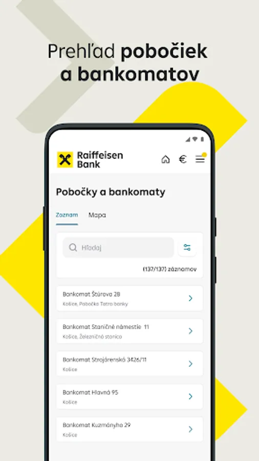 Should you have any questions, ideas or problems related to the application, please contact us via e-mail at info@raiffeisen.sk or using the contact details on the Raiffeisen Bank website: https://www.raiffeisen.sk/sk/o-banke/kontakty/