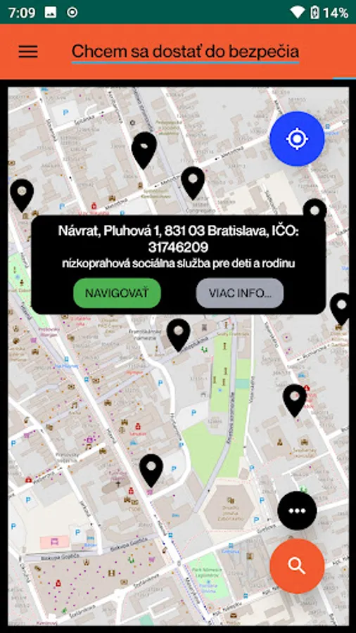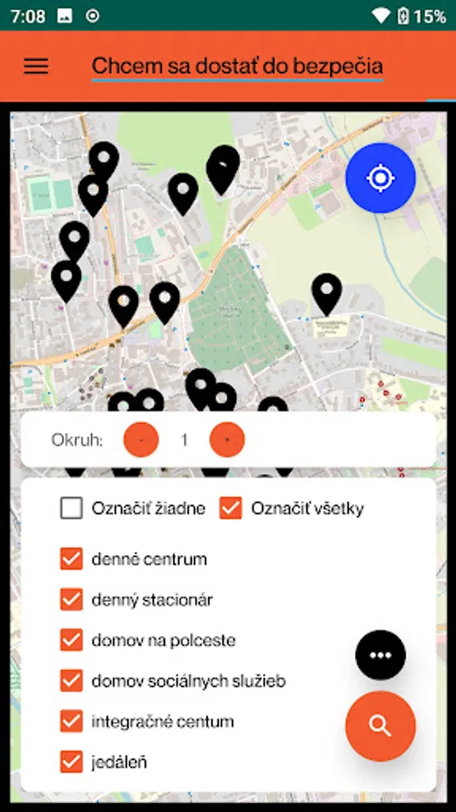 In the first part, the application allows you to display the location on the map and information about various facilities providing social services in Slovakia.