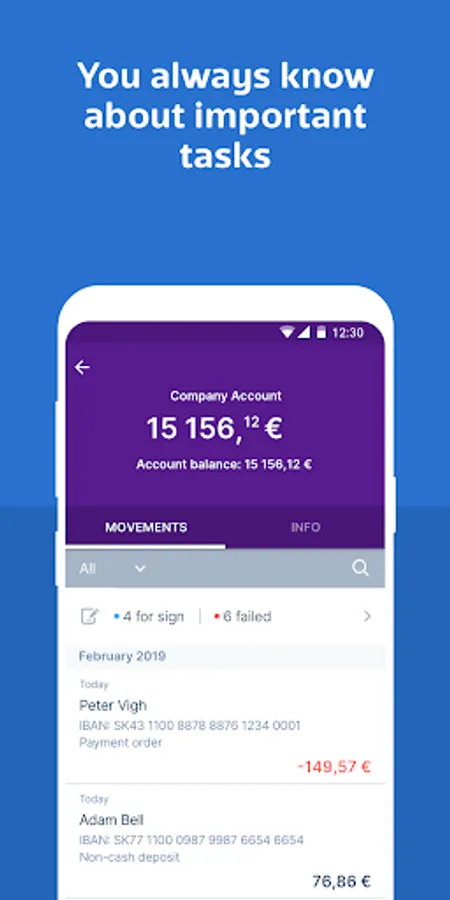 The mobile application Business24 is intended for companies and businesses with the Business24 service activated. It will allow you, for example, to sign transactions prepared by your accountant, enter a payment order by scanning a QR code or account numbers, to filter your account movements by various criteria and much more.