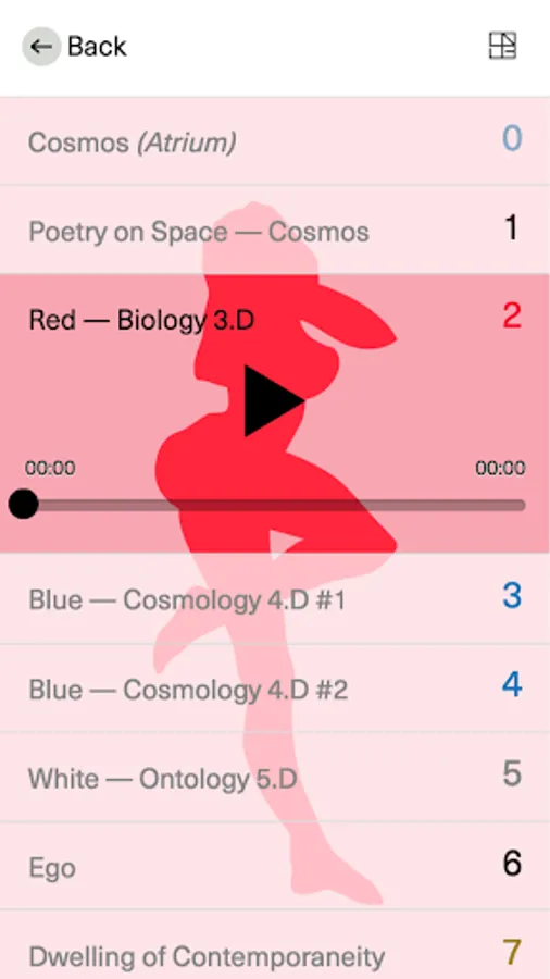 The app contains curatorial commentary for each of the rooms in English and Slovak language. The app features visual motifs and sound bites drawn from the artist's work.