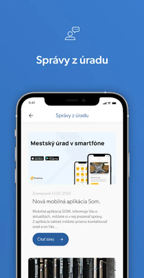 Official SOM application for Senec. It informs you about news, you can view news from your mayor. You can also contact the city council, the mayor and you directly from the application.
