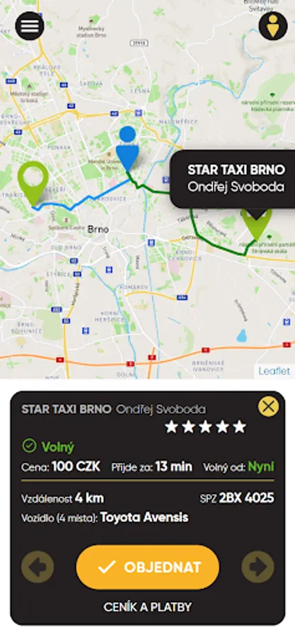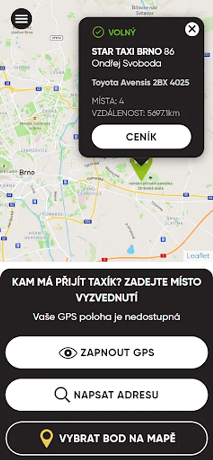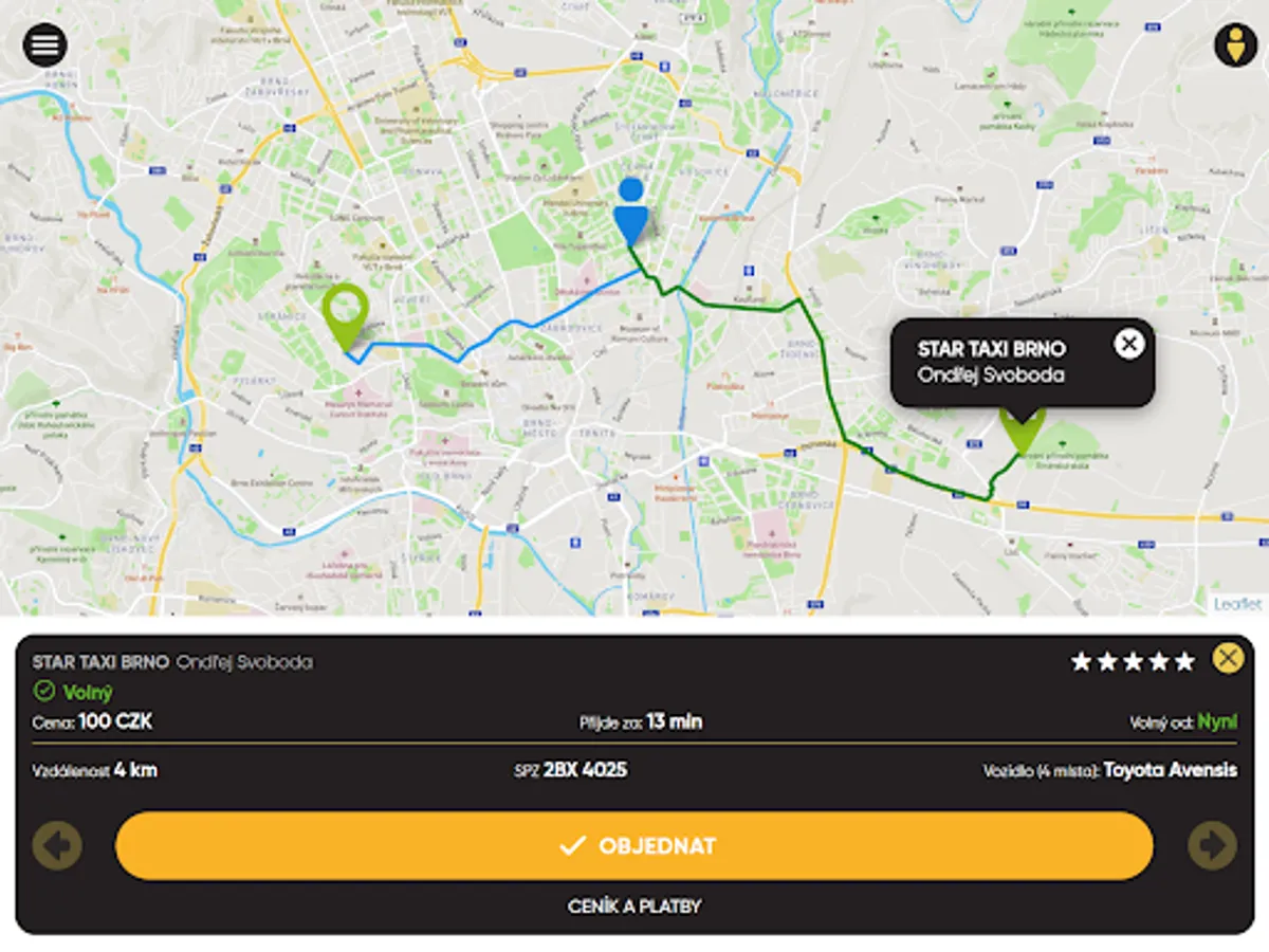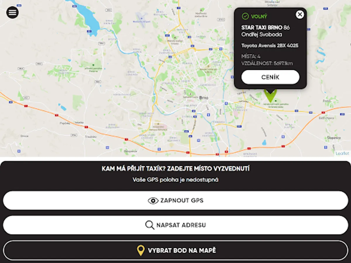 In the application, you simply choose the pick-up location where you want to call our taxi, and the application will find the nearest free car for you.
